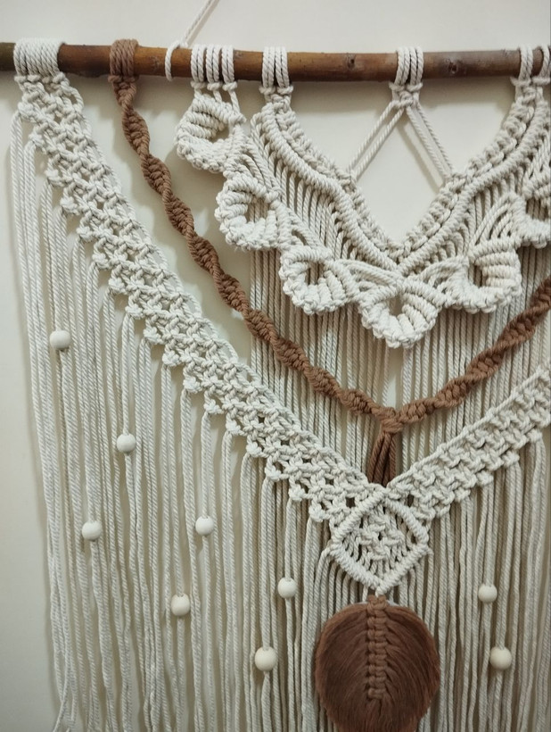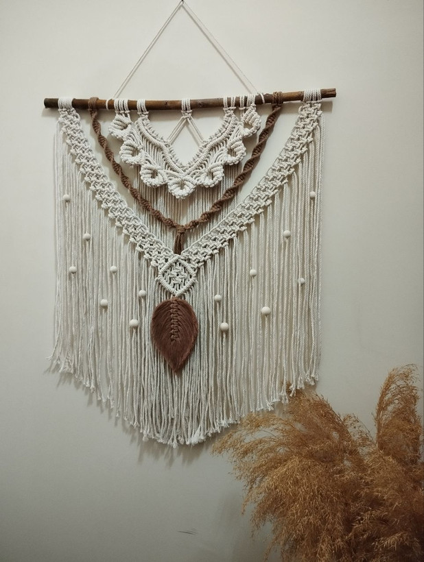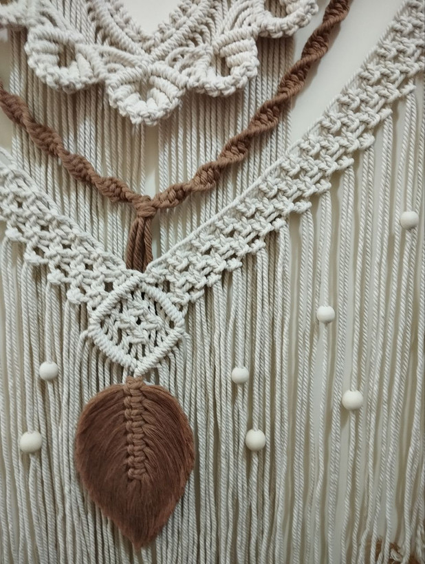 دیوارکوب مکرومه مهره دار طرح برگ