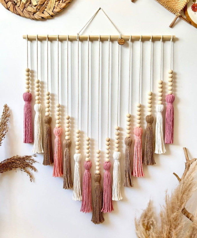 قشنگترین و ساده ترین دیوارکوب مهره دار با منگوله های رنگی،مناسب برای هر فضایی از خونه،اتاق خواب،گوشه دنج خونتون و حتی کافه ها و هدیه خاص و لاکچری برای عزیزانتون