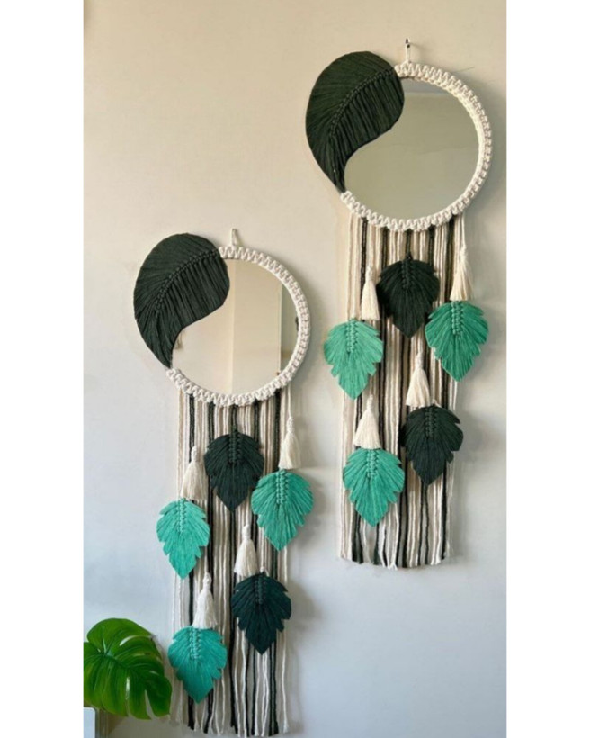 اینه مکرومه طرح برگ با قطر 30 سانت یک اثر هنری منحصر بفرد است که به زیبایی هرفضا می افزاید.این اینه با طراحی ظریف و هنرمندانه اش،جذابیت خاصی به دکوراسیون شما می بخشد