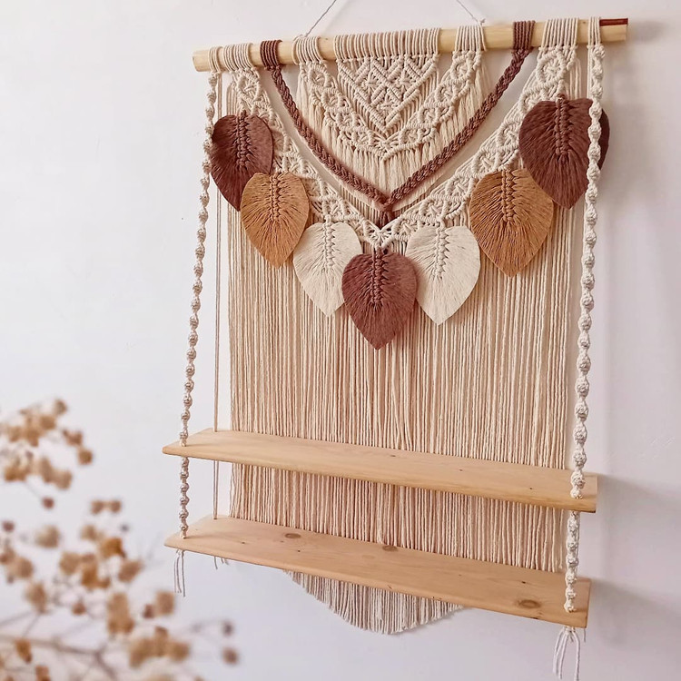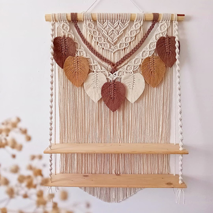 دیوارکوب مکرومه شلف دار دو طبقه طرح برگ